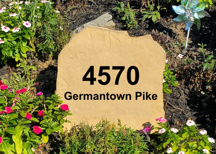 These address markers are made of a special molded enhanced concrete mix and come in two colors. The text is sandblasted into the stone then color filled with paint. They will last a lifetime.